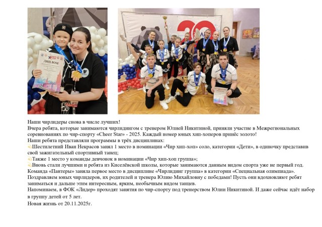 Чирлидеры команды Пантеры МОУ "Киселевская ОШИ" приняли участие в фестивале "Северная Пальмира 2025" в г. Санкт-Петербург и заняли два призовыз места!