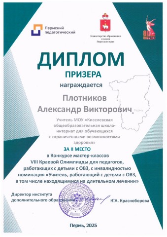 Плотников А.В.-VIII Краевая Олимпиада для педагогов, работающих с детьми ОВЗ, с инвалидностью.